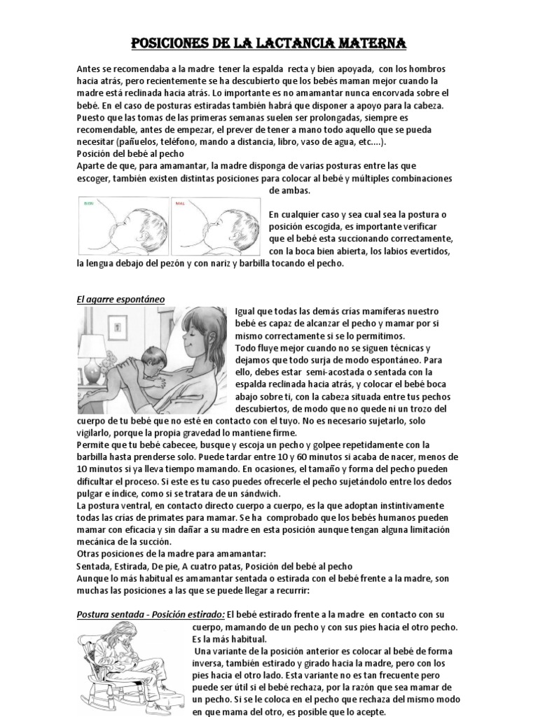 Infografía LM_Posiciones from s2.studylib.es Jan 24, 2019 · si tienes aviso previo, extrae la leche además de la lactancia materna y guarda la leche extraída para usarla durante ese tiempo. Lactancia materna y sexualidad femenina homeostasis además de regular las funciones reproductoras, la prolactina también controla un conjunto de funciones de autorregulación que conducen al mantenimiento en la composición y propiedades del medio interno del organismo. Nov 20, 2018 · el consumo de una variedad de alimentos diferentes durante la lactancia cambiará el sabor de la leche materna. Plataforma web para los expertos de la nutrición. Aug 01, 2018 · una duda habitual entre las madres es si alguna posición es más recomendable para dar el pecho. La organización mundial de la salud (oms) y el fondo de naciones unidas para la infancia (unicef) señalan que la lactancia es una forma inigualable de facilitar el alimento ideal para el crecimiento y desarrollo correcto de los niños. Beneficios de la leche materna. Jan 20, 2021 · lee también: